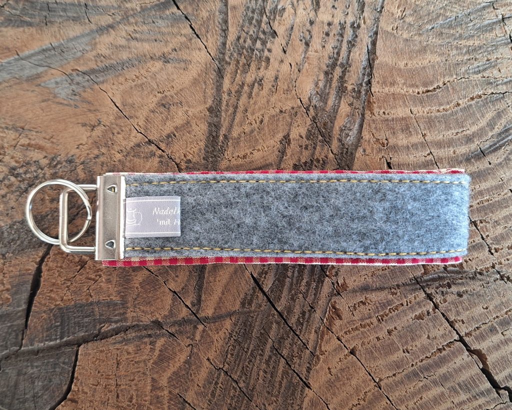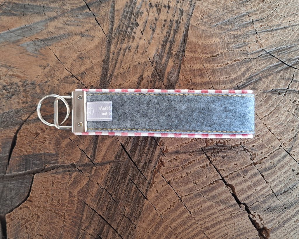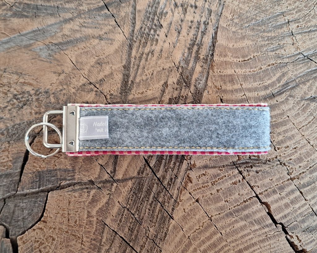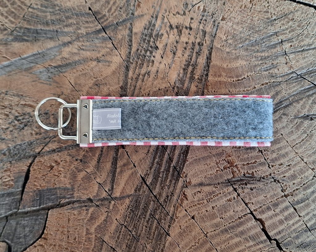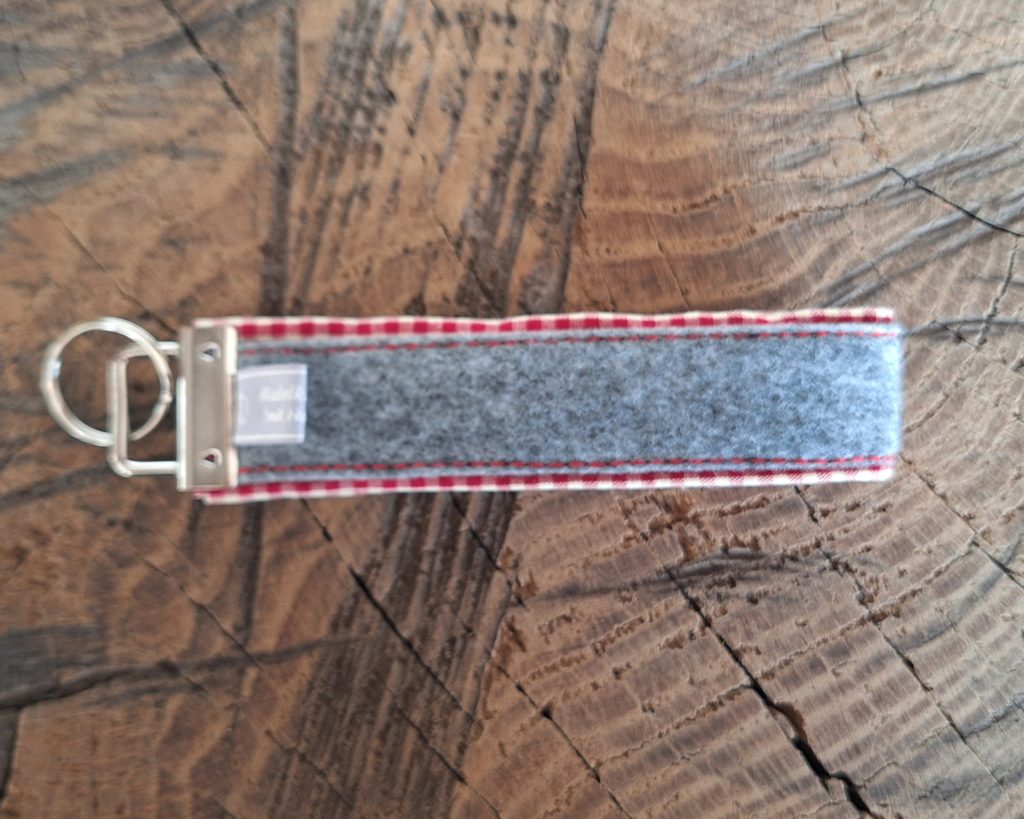 Die Schlüssel alle an einem Bund. Hier trifft Filz auf Stoff, bestickt mit kleinen Details.