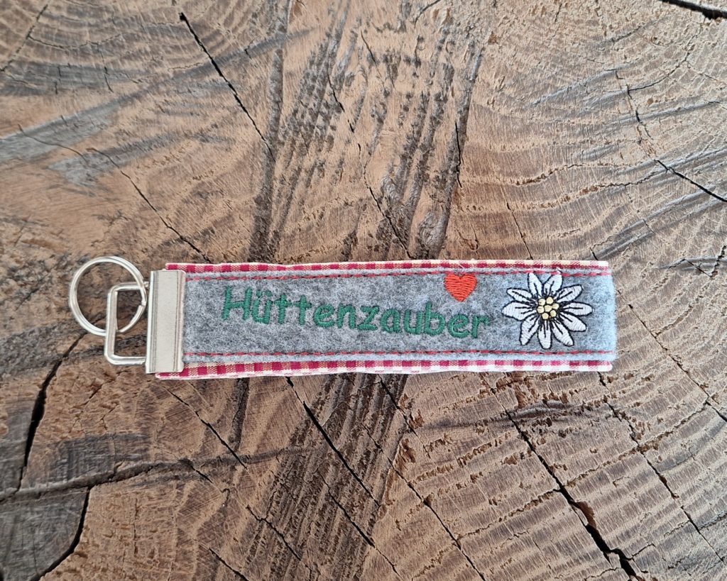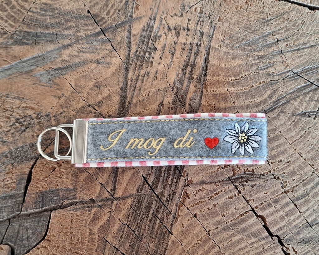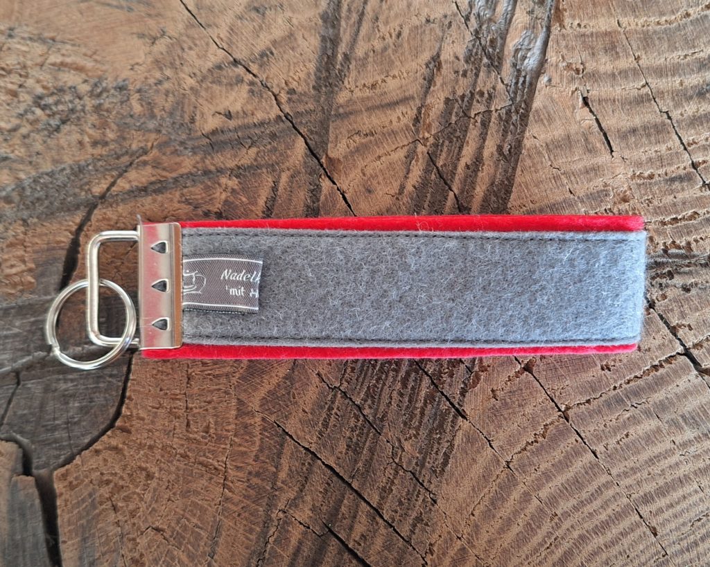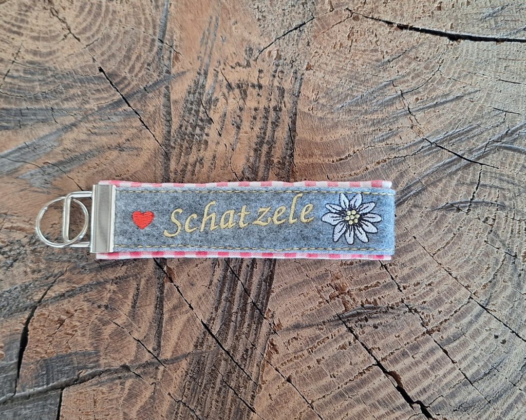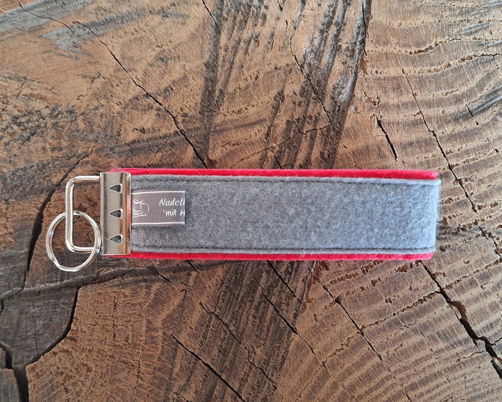 Die Schlüssel alle an einem Bund. Hier trifft Filz auf Stoff, bestickt mit kleinen Details.