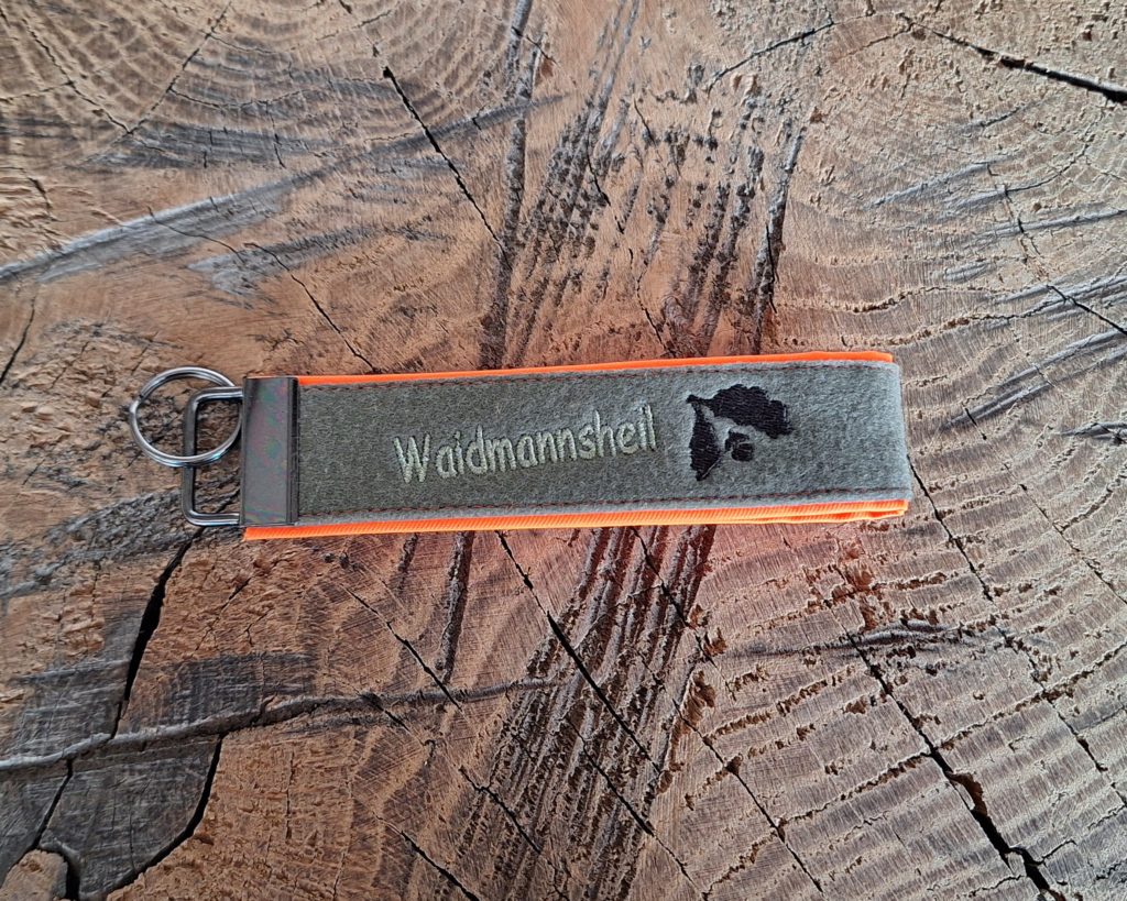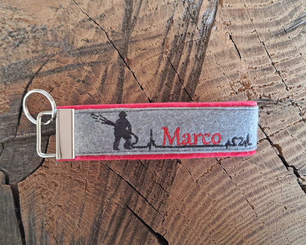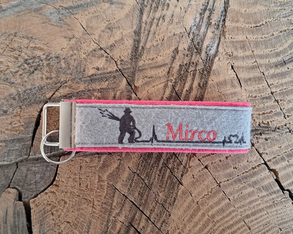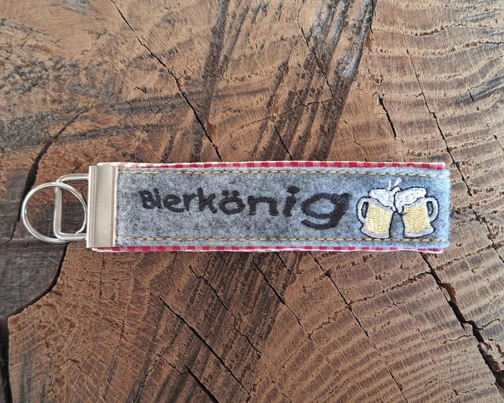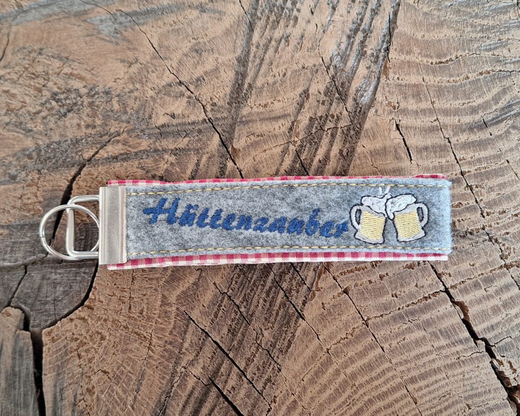 Die Schlüssel alle an einem Bund. Hier trifft Filz auf Stoff, bestickt mit kleinen Details.