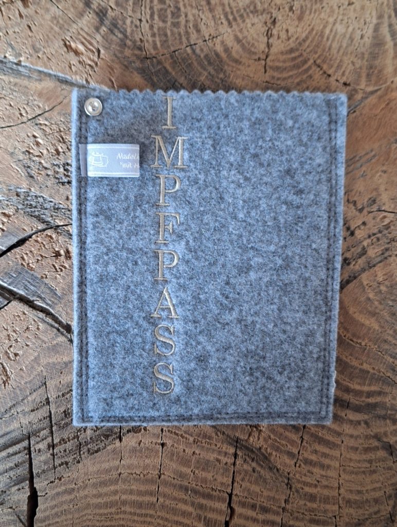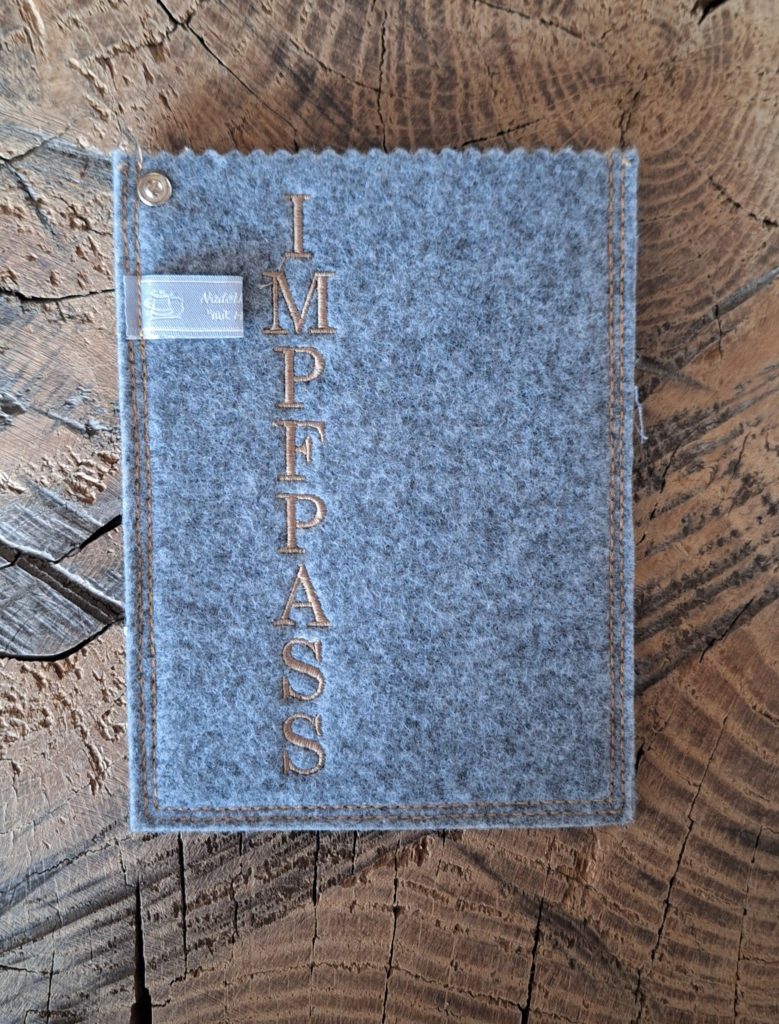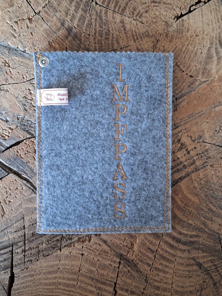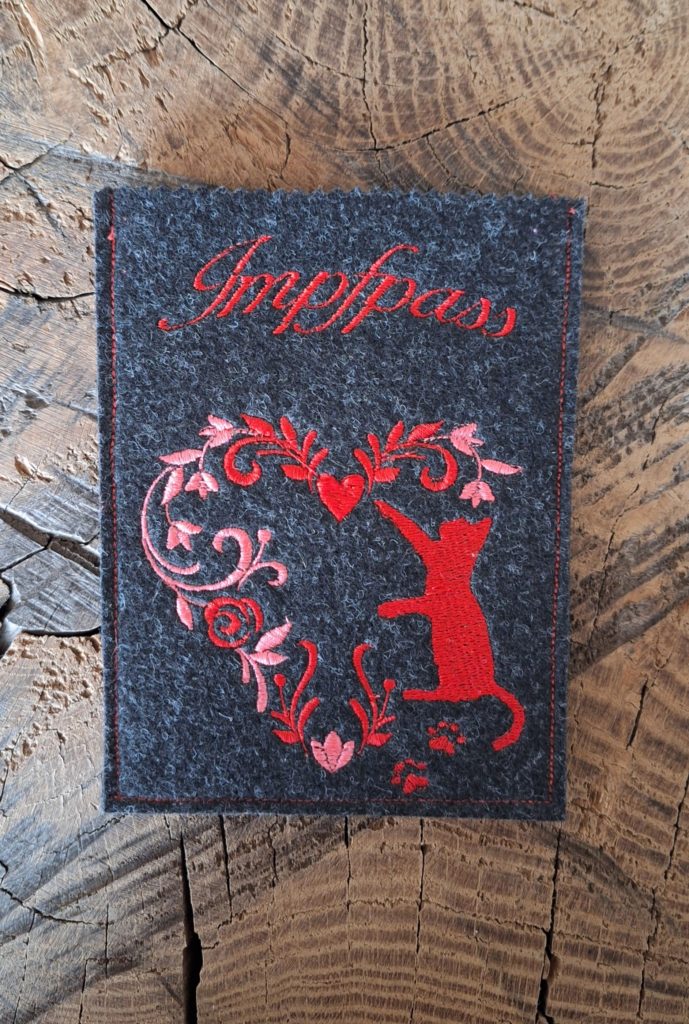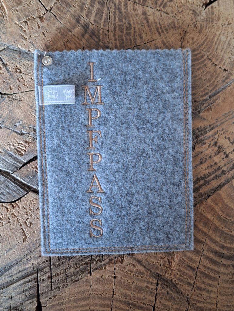 Impfpasshülle aus Filz, mit tollen Motiven bestickt. Damit der Impfausweis gut aufgehoben und geschützt bleibt.