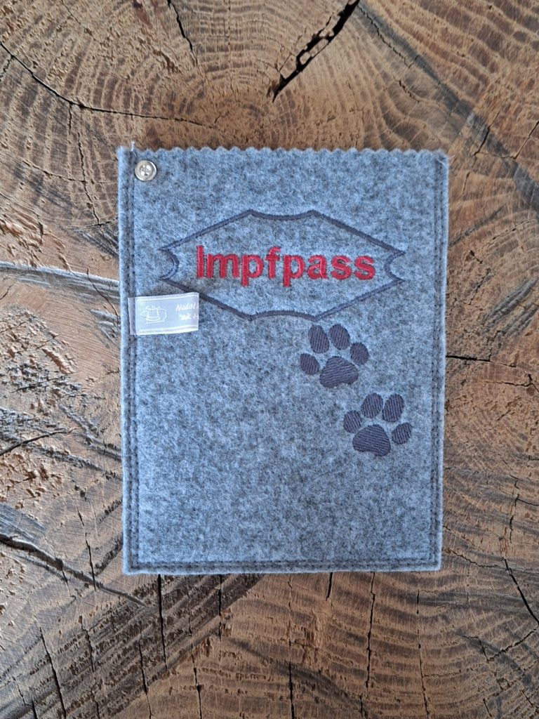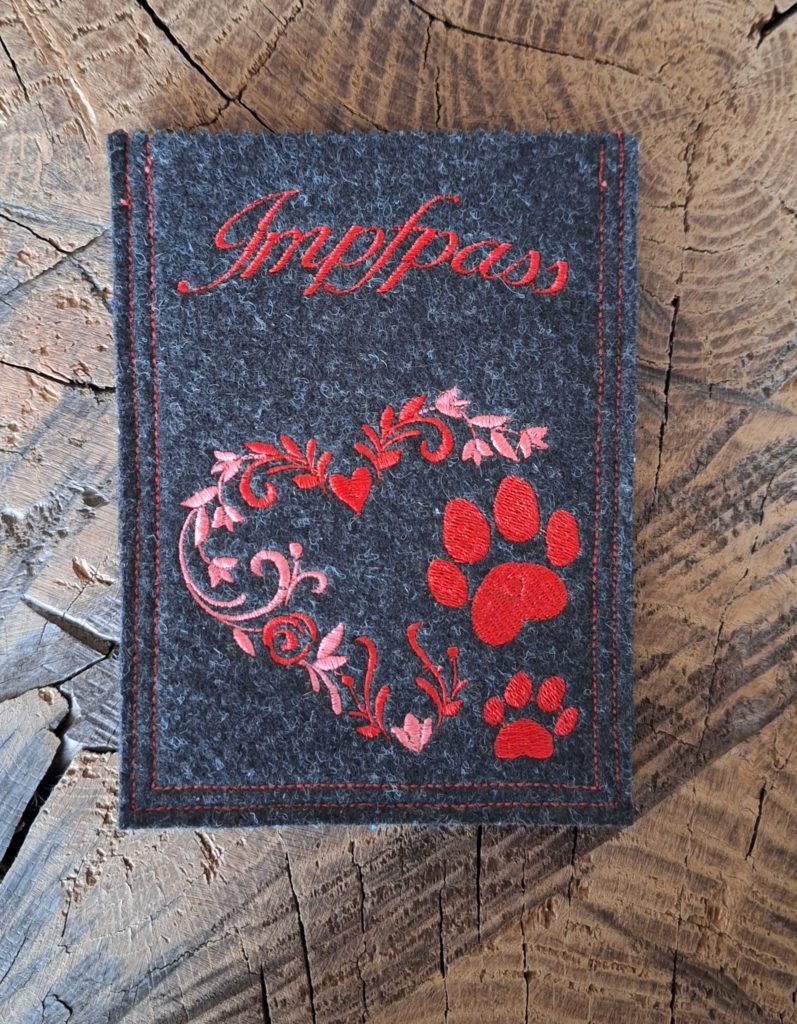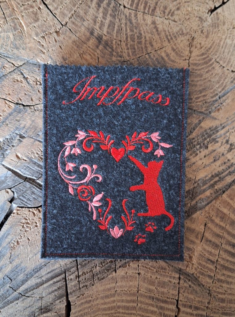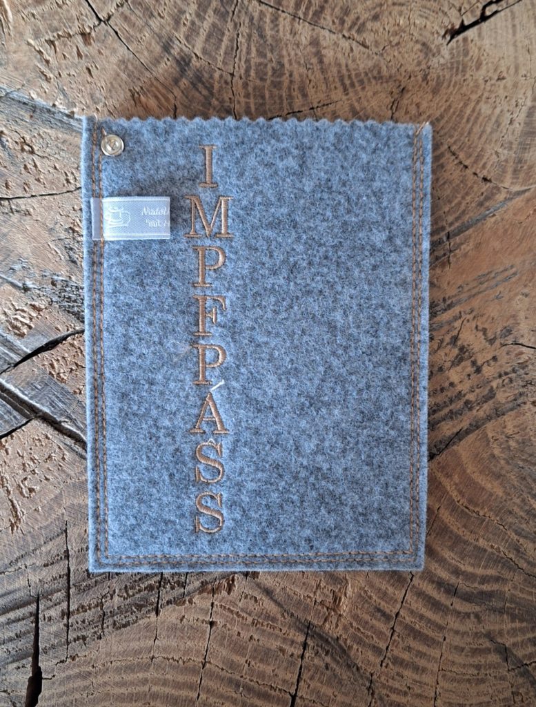 Impfpasshülle aus Filz, mit tollen Motiven bestickt. Damit der Impfausweis gut aufgehoben und geschützt bleibt.